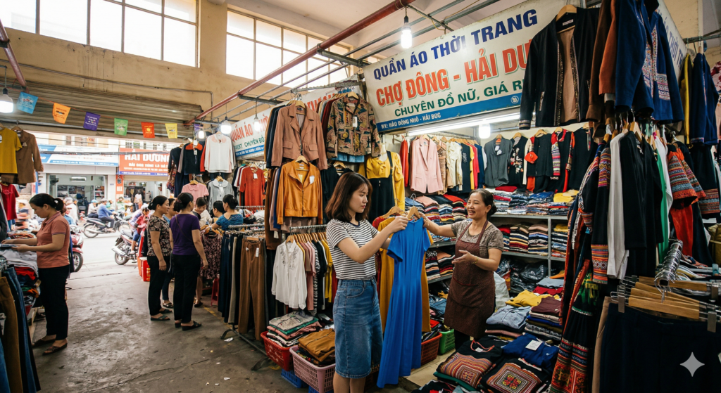 VD: Bustling shopping mall, local high-street boutique, flea market…