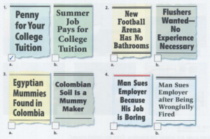 Listening Unit 8 Can You Believe It?Listening 2 Trang Nguyen 23/11/2020 5 lượt xem 0 bình luận Listening 2. Newscasters are reporting unusual stories. which headlines match their stories? Listen and check the correct headline. https://tienganhtriduc.com/wp-content/uploads/2020/11/38-Unit-8.mp3 1-a, 2-a, 3-b, 4-b 1-a, 2-b, 3-b, 4-a 1-a, 2-b, 3-a, 4-b Task 2 Listen again. are these statements true or false? check the correct answer. https://tienganhtriduc.com/wp-content/uploads/2020/11/38-Unit-8.mp3 1 the young man ended up with $28,000 True False 2 a football team wants to hire 200 students True False 3 San Bernardo is a city in Egypt True False 4 A government worker left a high-paying business jod True False Loading … Chia sẻ Email a link to a friend (Opens in new window) Email Print (Opens in new window) Print Related 🏷 Tags: IELTS Listening Luyện nghe Chia sẻ: Facebook Twitter Copy link