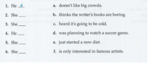 Listening Unit 9 Friendship Listening 3 Trang Nguyen 24/11/2020 12 lượt xem 0 bình luận Listening 3 People are giving invitations. what events are they talking about? Listen and circle the correct answer. https://tienganhtriduc.com/wp-content/uploads/2020/11/04-Unit-9.mp3 1 art show sports festival children’s concert 2 craft fair food fair farm show 3 a movie premiere restaurant opening ice-skating exhibition 4 restaurant opening book signing fashion show 5 car race football game marathon 6 flower show art show concert Task 2. listen again. what reason does each person give for refusing the invitation? Write the correct letter. https://tienganhtriduc.com/wp-content/uploads/2020/11/04-Unit-9.mp3 1-d, 2-f, 3-a, 4-b, 5-e, 6-c 1-d, 2-e, 3-a, 4-b, 5-c, 6-f 1-d, 2-e, 3-b, 4-f, 5-a, 6-c Loading … Chia sẻ Email a link to a friend (Opens in new window) Email Print (Opens in new window) Print Related 🏷 Tags: IELTS Listening Luyện nghe Chia sẻ: Facebook Twitter Copy link